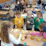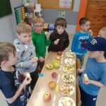 28.09. przypadał Dzień Jabłka. Klasy 1 wspólnie próbowały różne gatunki jabłek a także przepyszne wyroby z jabłek. Rodzice zadbali o podniebienia pierwszoklasistów 🍎🍏