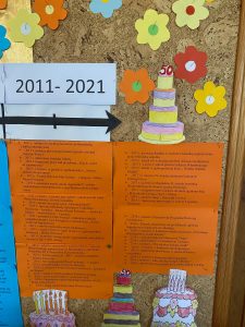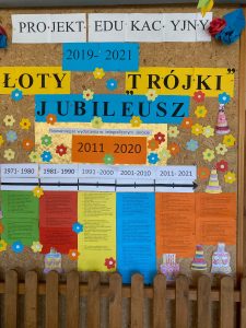 Na naszej jubileuszowej tablicy w holu szkoły pojawiły się informacje na temat ważnych wydarzeń, które miały miejsce w szkole w latach 2011-2021. To ostatnia dekada, która zamknęła taśmę czasu naszej Jubilatki. Oczywiście na tablicy nie znalazły się wszystkie wydarzenia związane ze szkołą. W ciągu 50 lat było ich znacznie więcej. Staraliśmy się umieścić te najważniejsze, które pozostały w naszych wspomnieniach lub miały duże znaczenie.