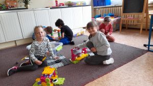 To my uczniowie klasy 1a. Już trzy tygodnie chodzimy do szkoły, gdzie mile spędzamy czas. Uczymy się, ale również bawimy. W sali mamy piękne, kolorowe klocki, z których budujemy takie cuda. I jak tu nie lubić szkoły…..