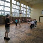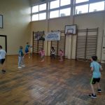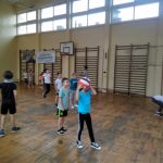 Ostatnie zajęcia klasy 1a na sali gimnastycznej były inne niż zazwyczaj. Na lekcji wychowania fizycznego z pierwszoklasistami spotkali się uczniowie klasy 7b. Co ich łączy? – pierwszy wychowawca. Starsi pełnili rolę trenerów i ćwiczyli z powierzoną im grupą młodszych uczniów. Mateusz, Filip, Wiktor i Stasiu wspaniale odnaleźli się w nowej, niełatwej dla nich sytuacji. Udzielali swoim podopiecznym wskazówek, zachęcali ich do pokonywania trudności, chwalili. Wszyscy, zarówno Mali jak i Duzi, z dużym zaangażowaniem uczestniczyli w zajęciach. Pani Lucyna była z nich dumna.