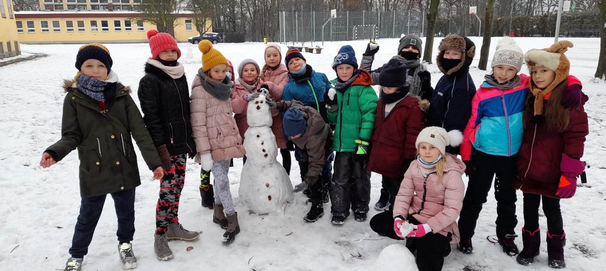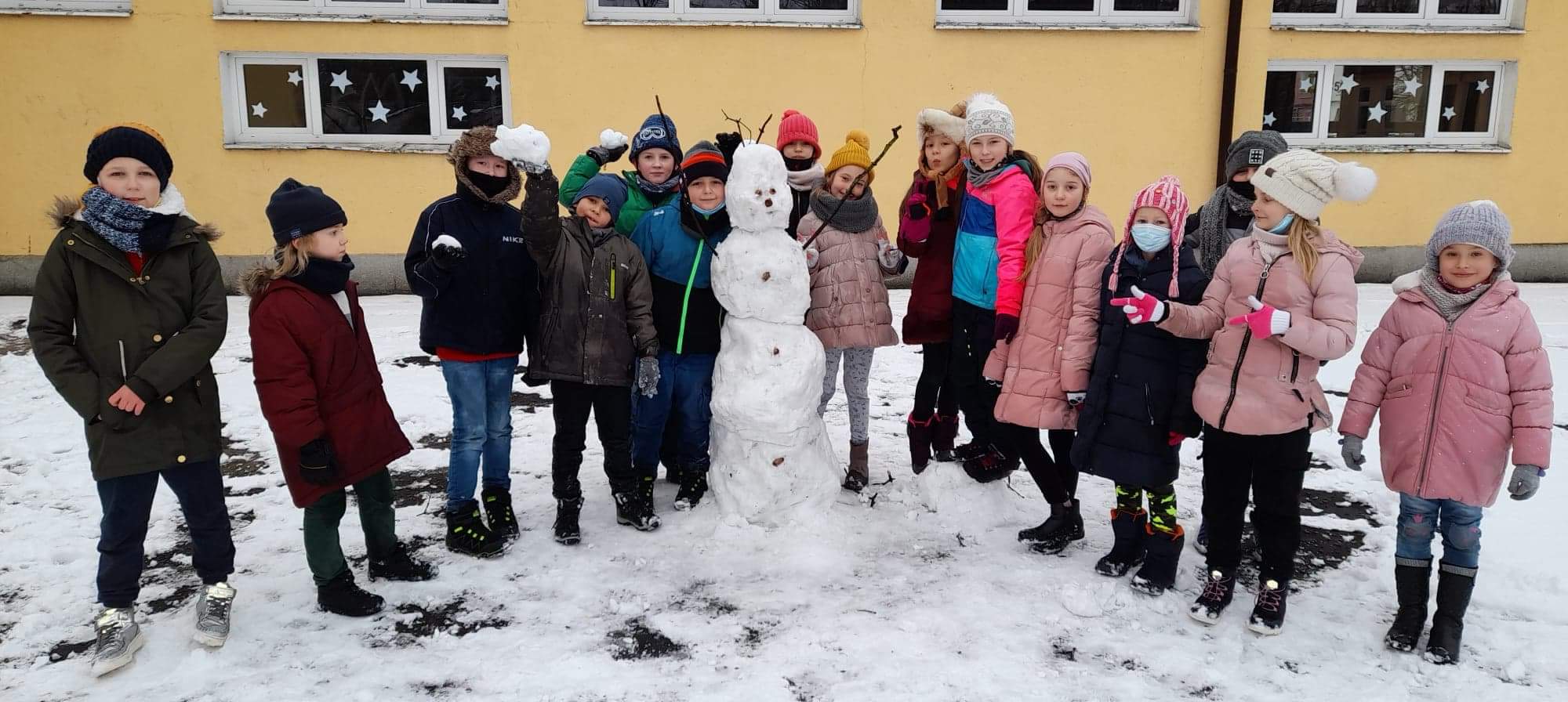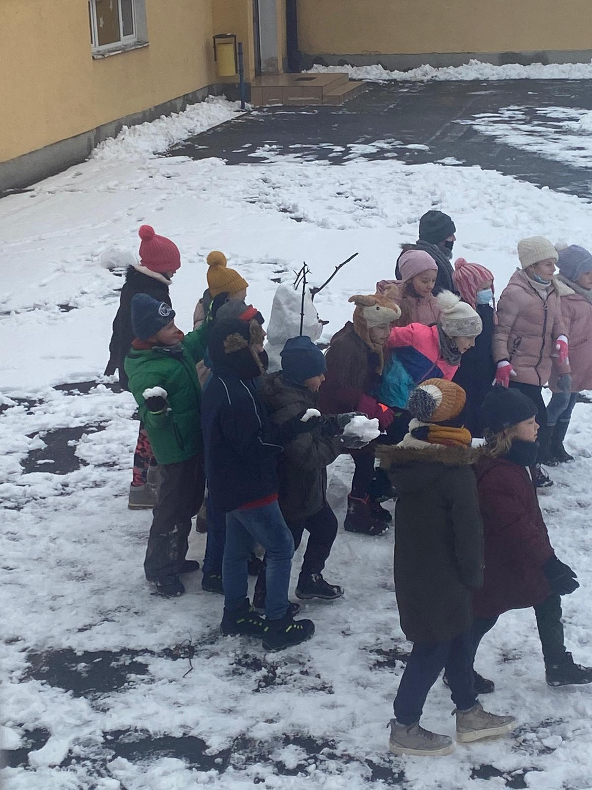Jak tu nie wykorzystać uroków zimy? Uczniowie 2a szaleli na śniegu na całego. Oto ich bałwanki Zabawa była na 102. Jutro powtórka.
