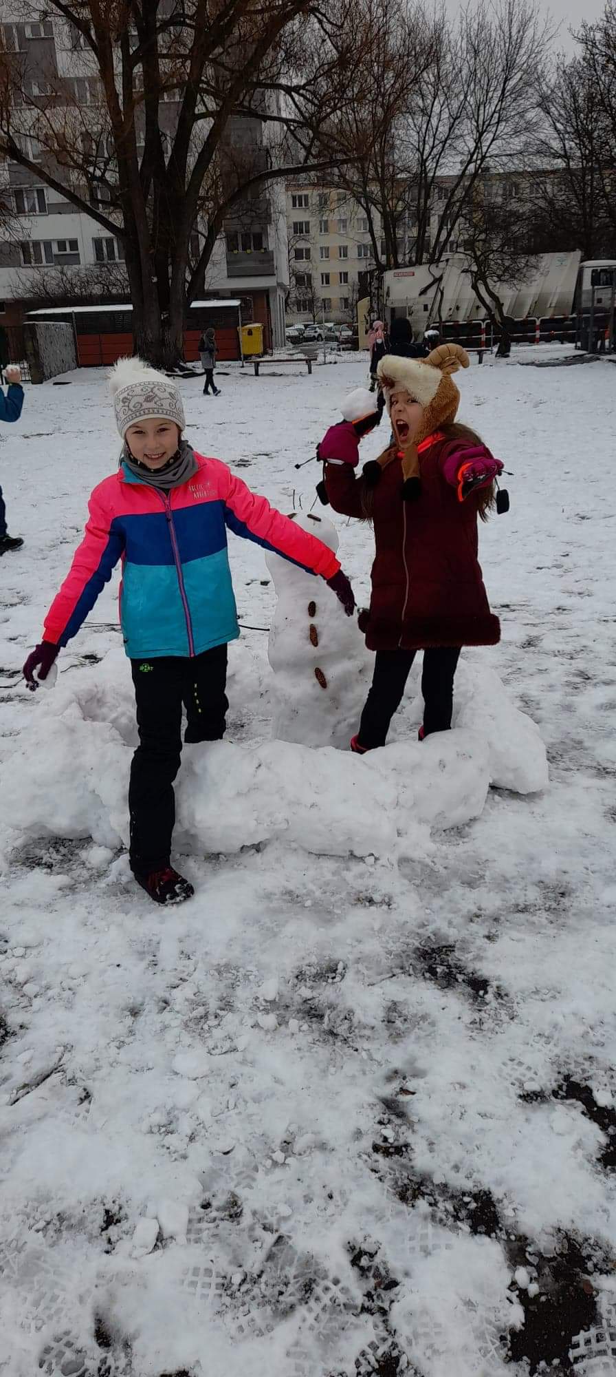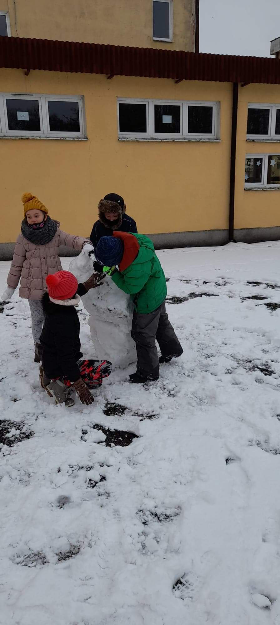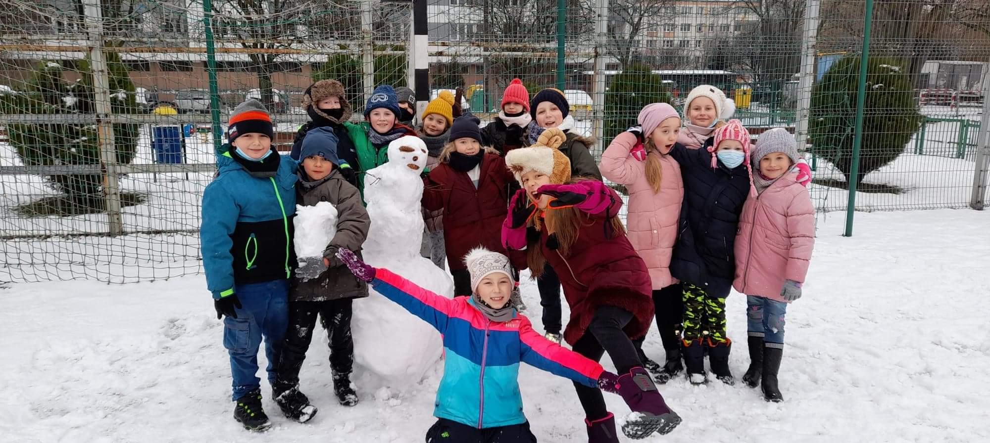 Jak tu nie wykorzystać uroków zimy? Uczniowie 2a szaleli na śniegu na całego. Oto ich bałwanki Zabawa była na 102. Jutro powtórka.