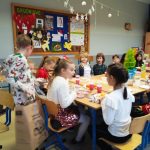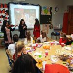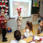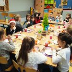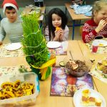 Tuz przed świętami Bożego Narodzenia przygotowaliśmy klasową Wigilię. Przy wsparciu i pomocy rodziców na wspólnym stole pojawiło się wiele smakołyków. Największym powodzeniem cieszył się puszysty sernik. Były też specjały ukraińskie. To miłe spotkanie uświetniły występy naszych koleżanek. By otrzymać prezent trzeba było wykonać zadanie. Upominki rozdawał Wojtek przebrany za renifera. Klasową uroczystość zakończyliśmy wspólnym kolędowaniem. Dodatkową atrakcją było wyjście do kina Helios na film pod tytułem „Świąteczna niespodzianka”.