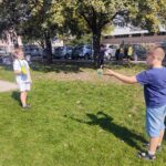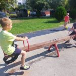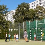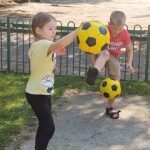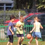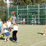Ciepły wrzesień sprzyja aktywności ruchowej na wolnym powietrzu. Po lekcjach dzieci chętnie korzystają z ostatnich dni lata, by pobiegać, pobawić się na zjeżdżalni i poćwiczyć na drabinkach. Teraz pojawiła się kolejna atrakcja sportowa – piłka nożna z „najprawdziwszym” panem od wf-u. Grają dziewczynki i chłopcy, razem! Nie ma fauli (no prawie), nie ma kłótni, jest wspaniała zabawa i gra fair-play. Tylko radość i zdrowa sportowa rywalizacja, a to przecież najważniejsze!