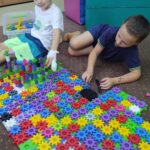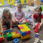 W świetlicy szkolnej mamy mnóstwo różnych, wielobarwnych, plastikowych i drewnianych klocków. Dzieci bardzo o nie dbają, bo uwielbiają układać z nich figury, kolaże, zamki i różne kosmiczne konstrukcje. Codziennie pod koniec zajęć klocki są starannie segregowane i układane w specjalnych pojemnikach. Co piękniejsze budowle pozostają nietknięte do następnego dnia, aby inne dzieci mogły je podziwiać. Dzięki takiej wspólnej „klockowej” zabawie lepiej i szybciej się poznajemy, uśmiechamy się częściej i razem odkrywamy inny, wymyślony, magiczny i kolorowy świat.