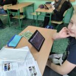 Na ostatniej lekcji języka angielskiego w klasie 5a uczniowie powtarzaliśli czas przeszły, rozwiązując quizy na tabletach.