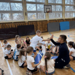 W dniach 19 i 20.11 uczniowie klas 1-3 wzięli udział w zajęciach sportowych prowadzonych przez trenera Lecha Poznań. Dzieci bawiły się i wykonywały różne ćwiczenia z przyborami. Na koniec każdy uczeń otrzymał drobny upominek. Teraz czekamy na druga część realizowanego projektu z Lechem Poznań, będą to pogadanki o zdrowym odżywianiu.